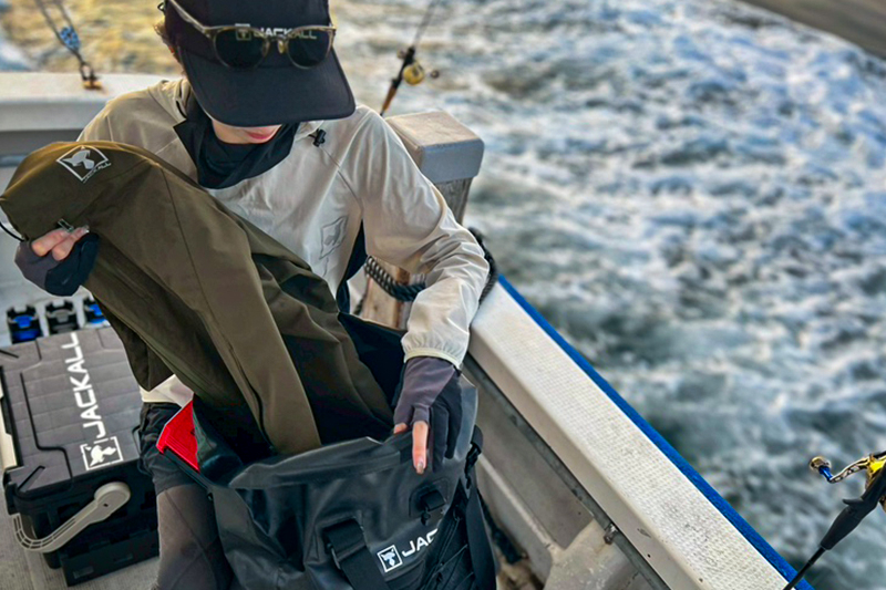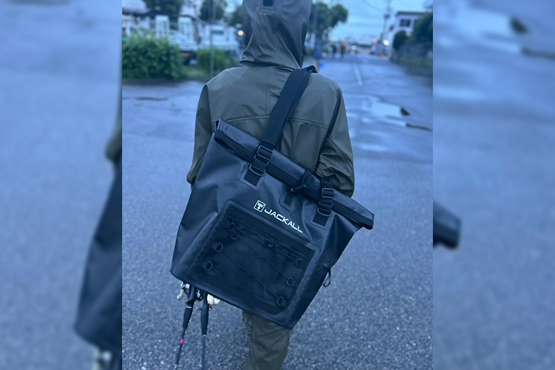 電車釣行や遠征、オフショアフィッシングなどあらゆるシーンで活躍する耐久性の高い防水トートバック。