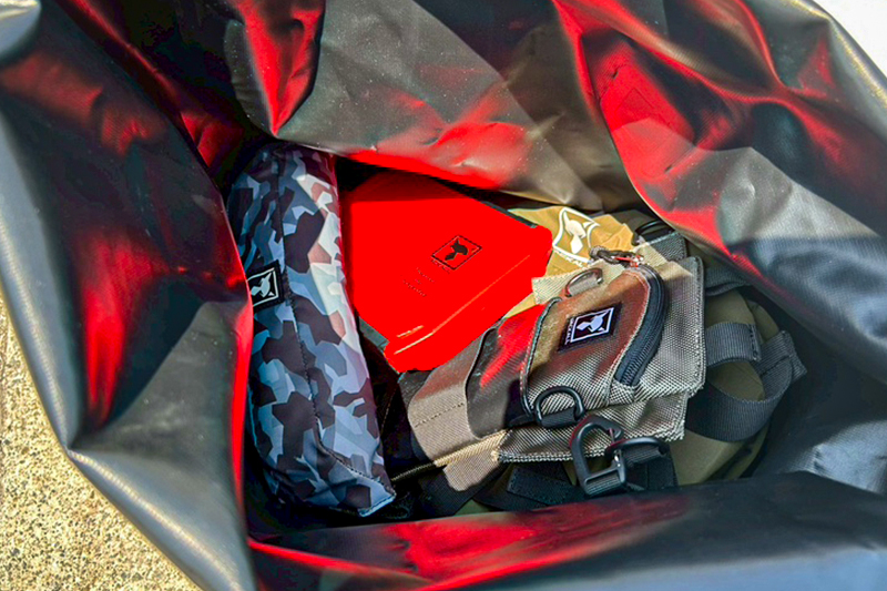 私はMサイズを使っていますが、しっかりマチもあるのでウェアやライフジャケット、タックルなどを入れても余裕がありました。