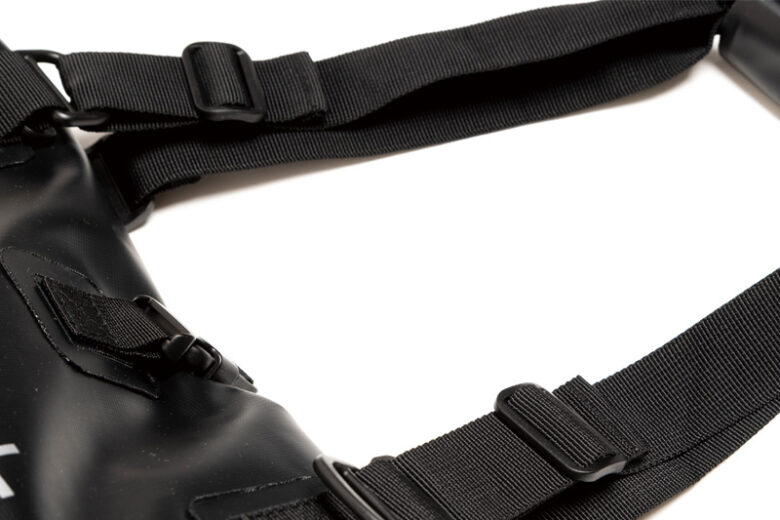 私はMサイズを使っていますが、しっかりマチもあるのでウェアやライフジャケット、タックルなどを入れても余裕がありました。