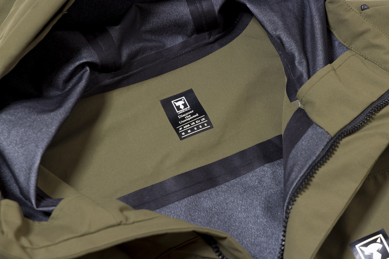 縫い目はすべて防水テープで処理しており、雨を受けやすい肩周りは生地を2重にし補強しています。ジャケットのジップは深い前立てでカバーしました。