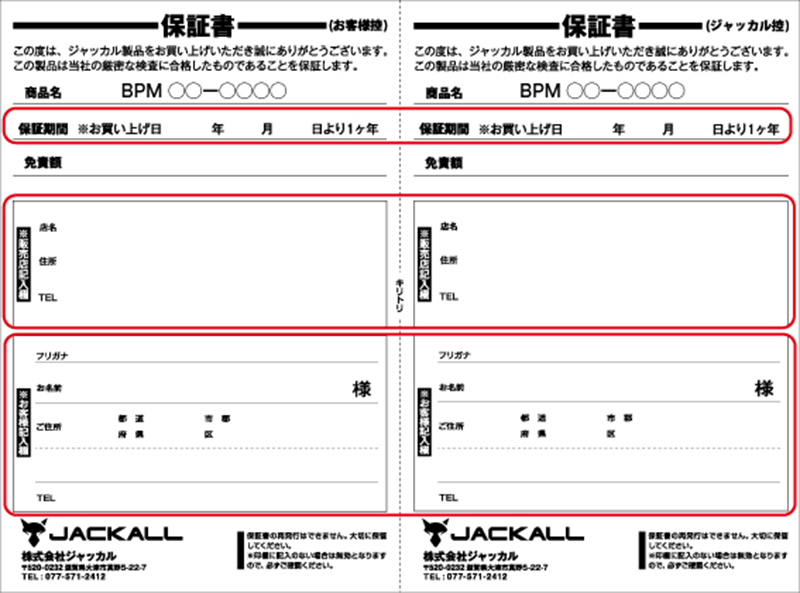 BPM購入時に製品についている保証登録カードをジャッカルに送るだけで自動的にエントリーとなります。