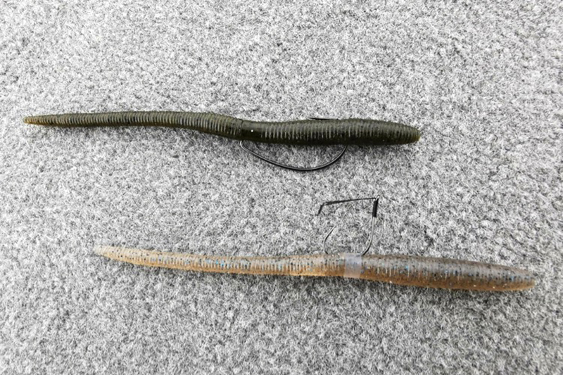 1)オフセットセッティング(オフセットフック3/0+0.9~1.3gネイルシンカー)