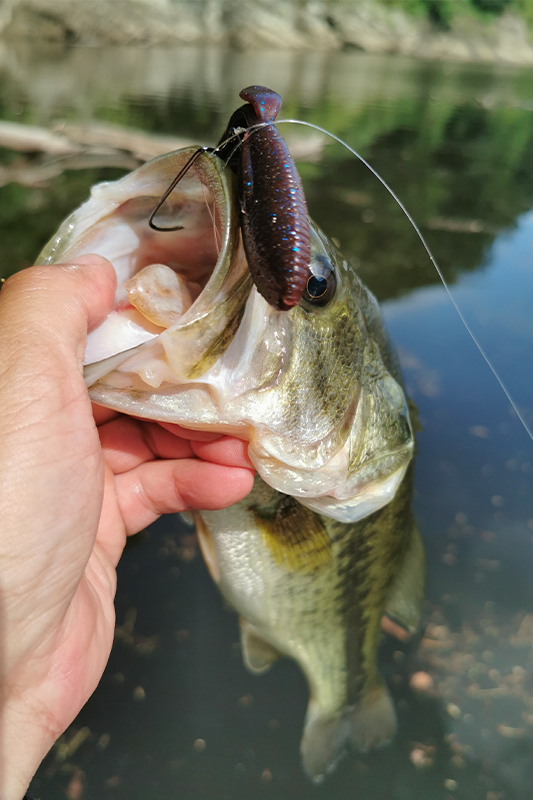 また、立ち木周りといったヘビーカバーでシンカーを故意に引っかけながら釣るのでロッドティップの強いヘビーアクションロッドを使ってください。