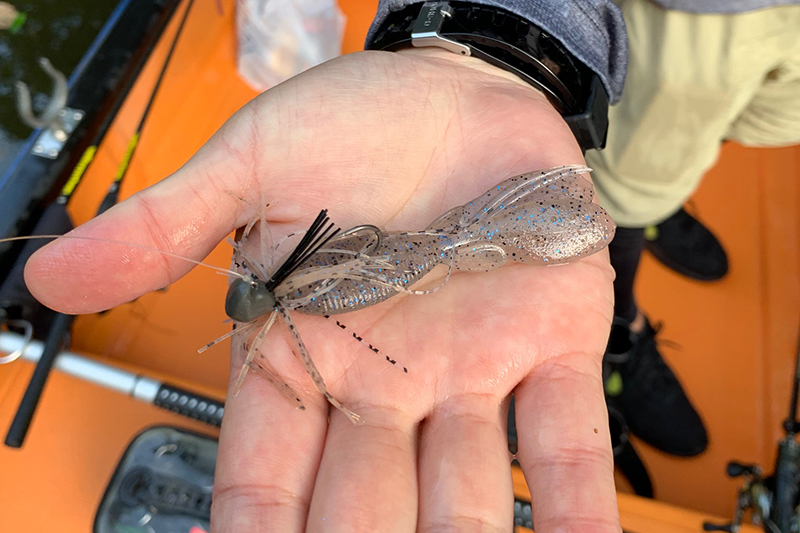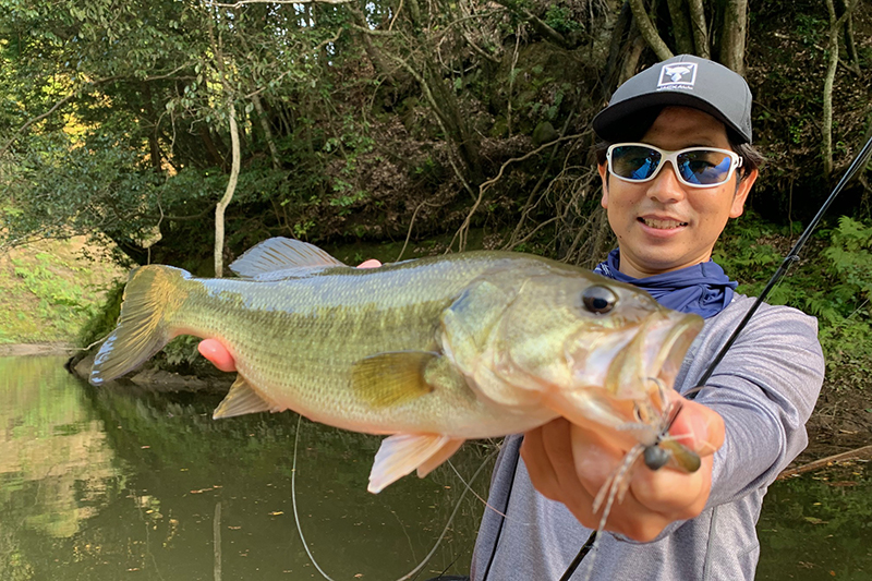 スモラバのカバー撃ちと言えばスピニングタックルを使った、通称パワーフィネスが関東では古くから定着していますが、今回自分が使用したタックルは、ミディアムアクションのロッド(ポイズンアドレナ163M)にリールはアルデバランBFS XG、ラインはフロロカーボン10lb、いわゆるベイトフィネス的なタックルにビーク3.3か4.3g+ファイボス3inをトレーラーにしたリグのスイミングと、ライトなカバーに絡めた釣りで使用します。