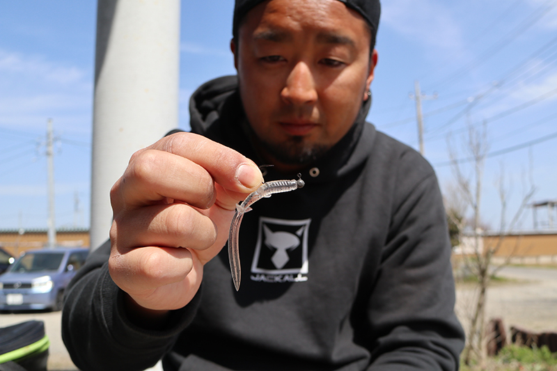 使うルアーはもちろんこの釣り用に開発した”DB UMAカスミ”にワッキージグヘッドのセッティングです。