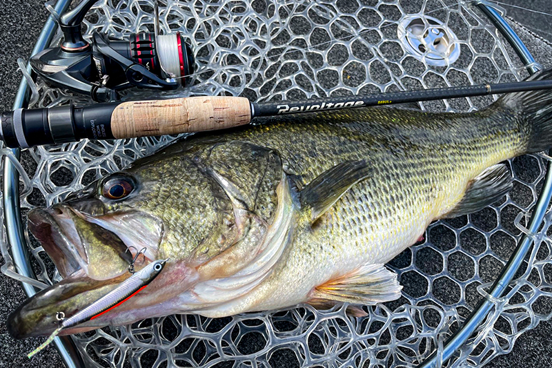 バスに警戒心を与えないようロングディスタンスで狙う表層パターンにピッタリのロッドです。