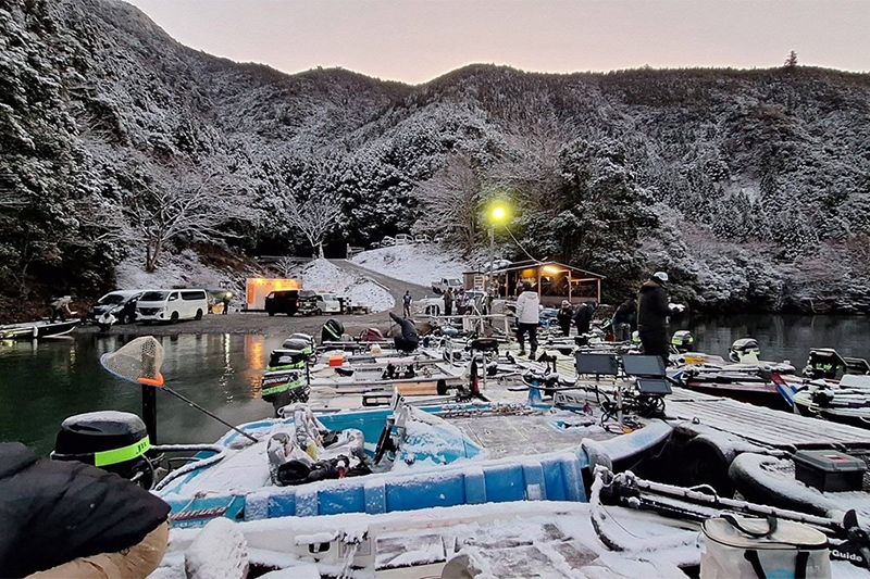 当日は朝からボートに積もった雪が約5cm、雪かきからのスタートとなりました。