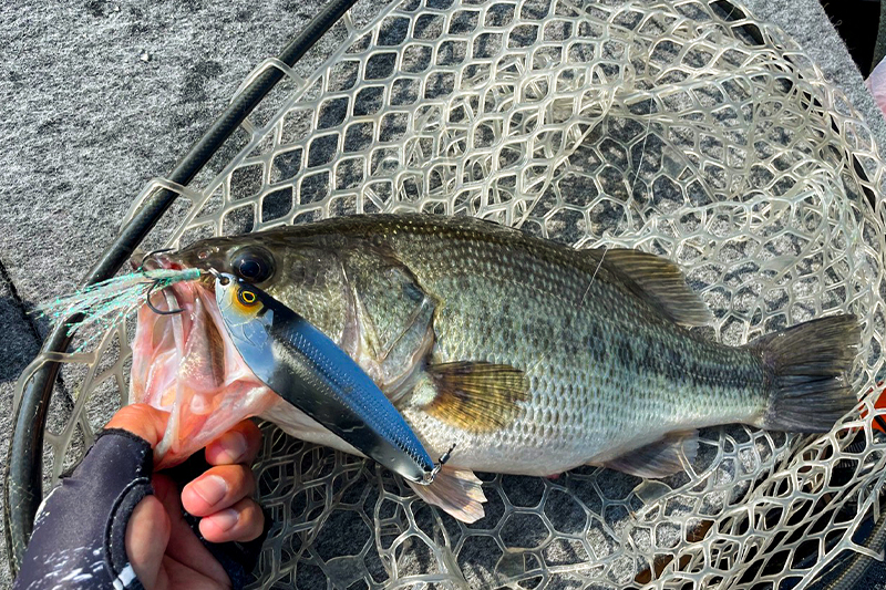 この時期のバスは、表層〜ボトム、縦の動き、横の動きとさまざまなルアーで釣れます。