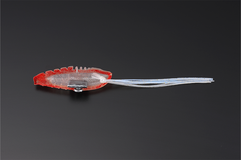 ボディの屈折率を上げるリブ設計で高いフッキング力を誇り、貴重なバイトを逃さず、超ソフトマテリアルと中空ボディ構造を採用し、弱いバイトでもボディが潰れることで確実にフックアップに持ち込むことを可能にしています。