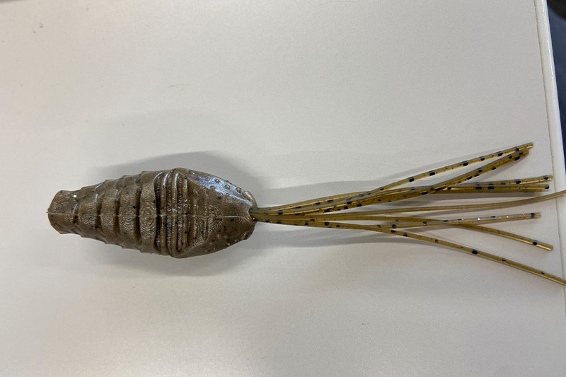 ここで導き出したのは『限界まで柔らかいエラストマーと限界まで空気室を広げる』でした。 ダブルフックを搭載できるフロッグタイプも検討していましたが、ワームフックで交換出来るようにしたかった為、ボディの素材や形状でカバーする方向性となりました。