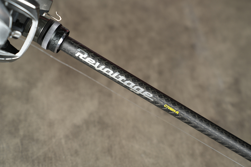 この釣りはボトムに向かって高速で逃げるベイトを演出するためのリグなのですが、シンカーのウェイトが重いのでタックルはRevoltageのC-70MH-Rにレッドスプール14lbといった、まあまあ強めのセッティング。