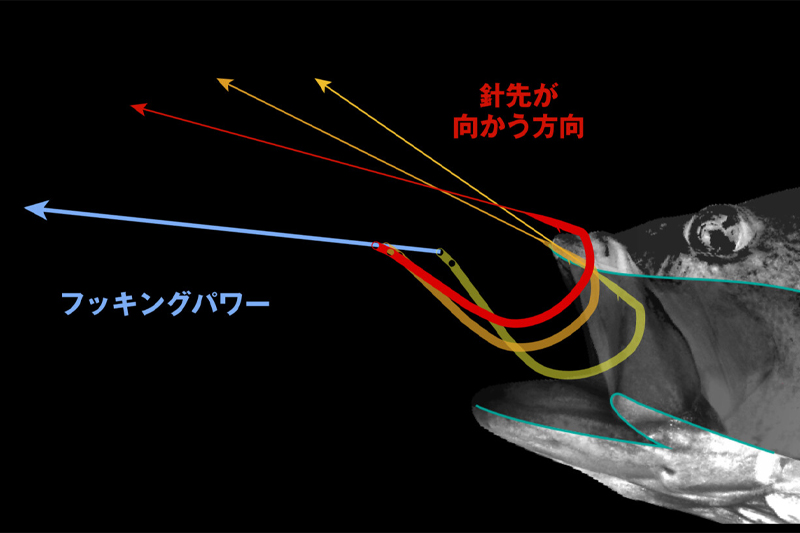 しかし、アプローチアングルの大きさから、遠距離+糸ふけの状態で巻き取り、魚の重さが乗った時に“ツツッ”という感じで口の表皮を滑ってくる感覚でフッキングできないケースが多く発生しました。