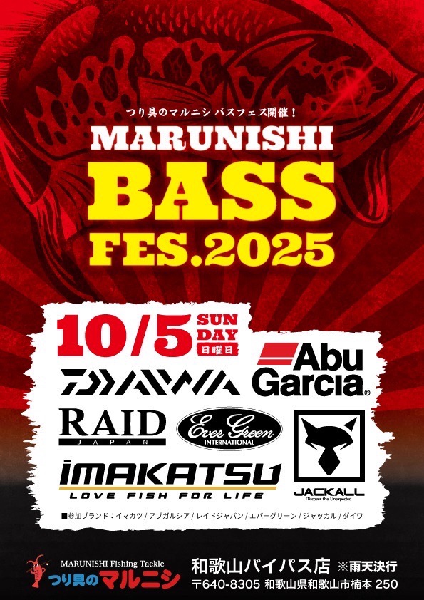 つり具のマルニシ 和歌山バイパス店様にて開催される「MARUNISHI BASS FES.2025」に出展いたします。