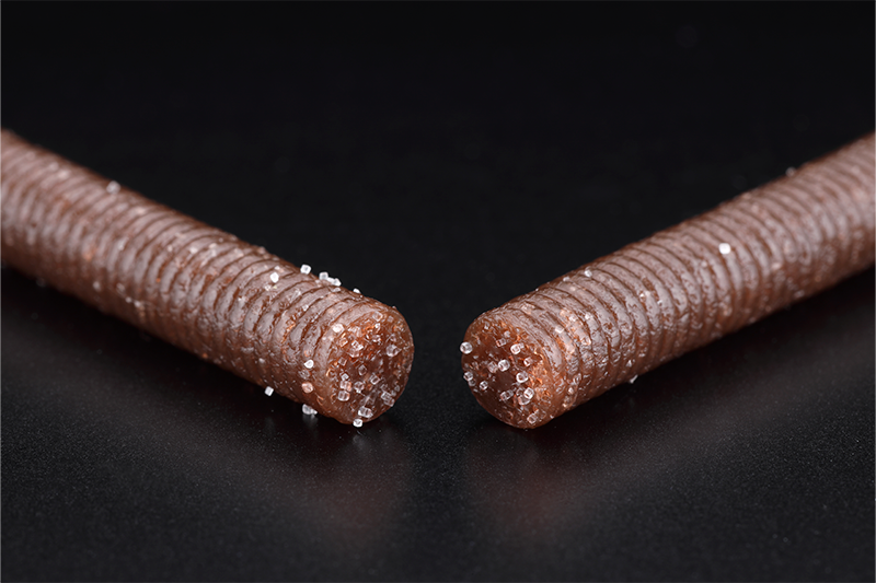 当然、ツヤッとした表面に仕上げることも可能ですが、それだとフォールした時に水を逃してしまい、生き物感がなくなってしまうのです。あえて艶を無くすように調整し、塩も粗いものを配合することによって原料の結合を抑えて、モサモサとした釣れる動きを出しています。