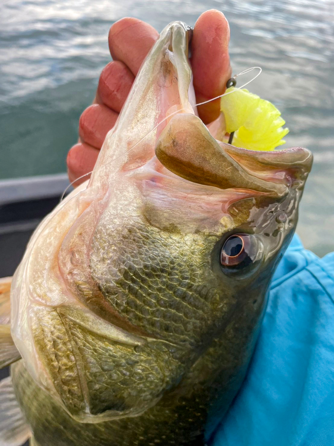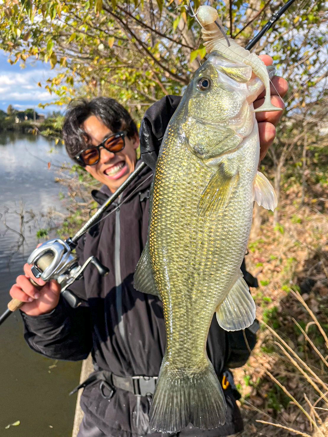 様々なルアーをアプローチをしてもなかなか喰わない状況の中、レイダウン(水深4m)にデッドスローラーフルコンタクト5.5″をボトムまで沈めて、そのレイダウンにデッドスローに擦ってくる釣り方で50UPの2キロオーバーをキャッチ出来ました‼︎
