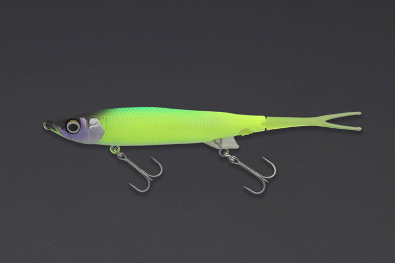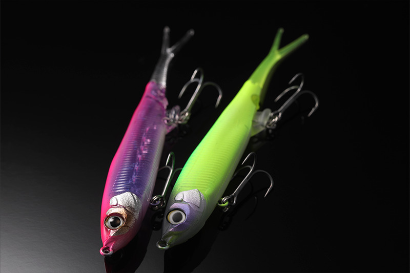 どちらのカラーも遠距離からでもバイトを確認できる高い視認性を持たせており、チャンスを逃しません。また、ホワイトベリーのカラーリングを施しており、これは視力で餌を探す魚に対してバイトマーカーの役割を果たしています。