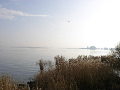 晴天無風の琵琶湖面に無数に浮かぶ水鳥。