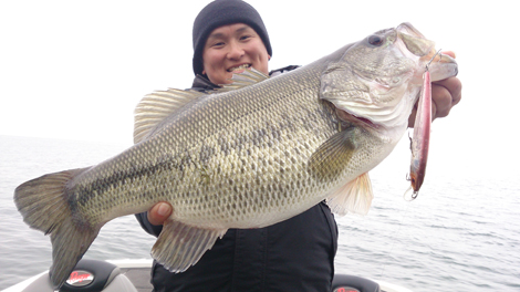 魚は真冬モードにはならず、タイミング次第でビッグバスがアグレッシブにアタックしてくる状況でした。