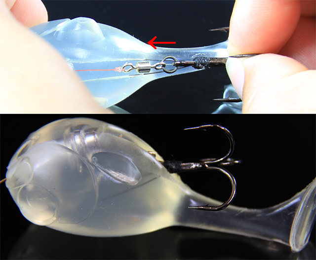 これは、ワイヤーをボディーに刺してフック自体を固定する役割のもので、ボディーの身切れによる破損を最小限に抑えるためなんですね。