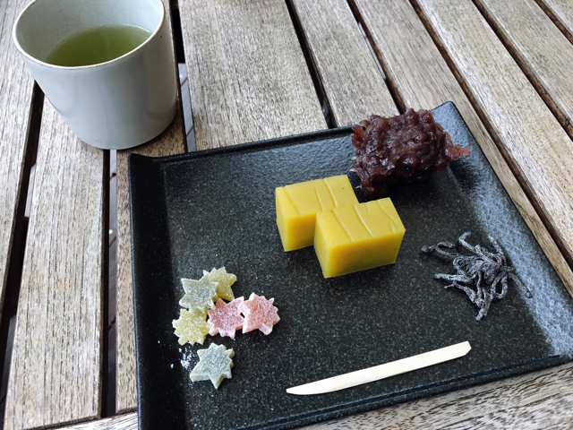 休日は時間帯によって混んでいる事がありますが、”とらや工房”があり 落ち着いた雰囲気のある敷地で和菓子と茶をいただけます。