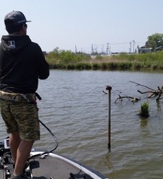 狙うべきスポットは、シャローの中でも普段バズベイトを引きたくなるようなカバーです。この時期のバスはシャローの障害物直下に浮きたがっているのです。