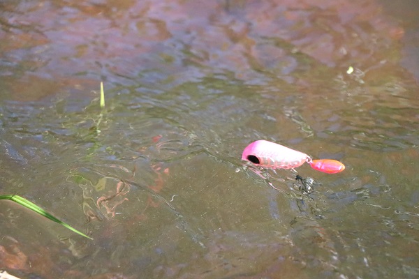 ロッドティップを水面スレスレ、もしくは水中に突っ込んだ状態でタッピーをちょっと早めに巻く。