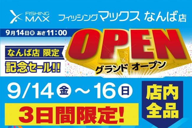 9月14日(金)、大阪難波にて、フィッシングマックスなんば店様がグランドオープン致します。