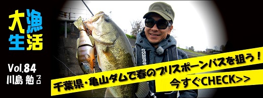 今回の大漁生活は川島勉プロが千葉県・亀山ダムで春のプリスポーンバスを狙います。