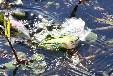 水面というこれ以上逃げることの出来ない境界でバスがルアーを発見する、