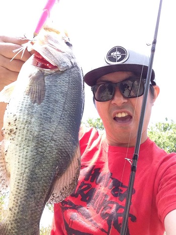 強くアピールできるカワシマイキーでストラクチャーに当て込んでいるとバスが飛びだしてきました!