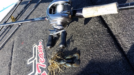 本戦では、スピナーベイトをメインパターンにビッグフィッシュはウォブリング3インチのヘビダン等で入れ替える展開。