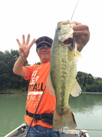 オススメのセッティングはオフセットフック5/0にカバークロー4″を逆付けノーシンカーで使用し、