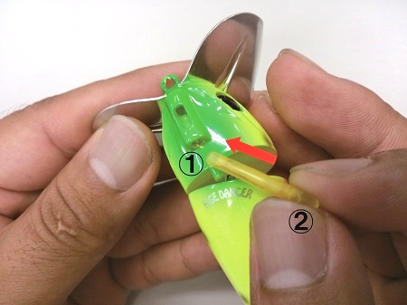 (写真①の方向で入らなければ、②の方向から差し込む)