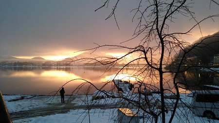 先日7日に雪と雨が降った後河口湖へ行くと神秘的な景色に出くわし「パシャ!」。