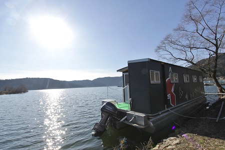 ワカサギ釣り用ドーム船の進水式が行われました。