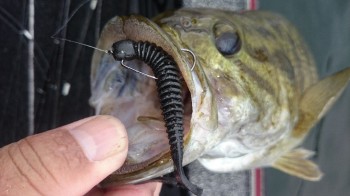 シザーコーム3″のライトキャロ、シンカー3/32ozをメインリグでパートナーと協力し