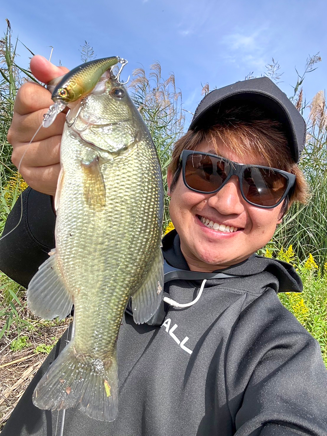 急激な水温低下で活性が低い朝でしたがルアーが動くギリギリの超デッドスローリトリーブで沈み物の上を通してくると小さいバイトが…。