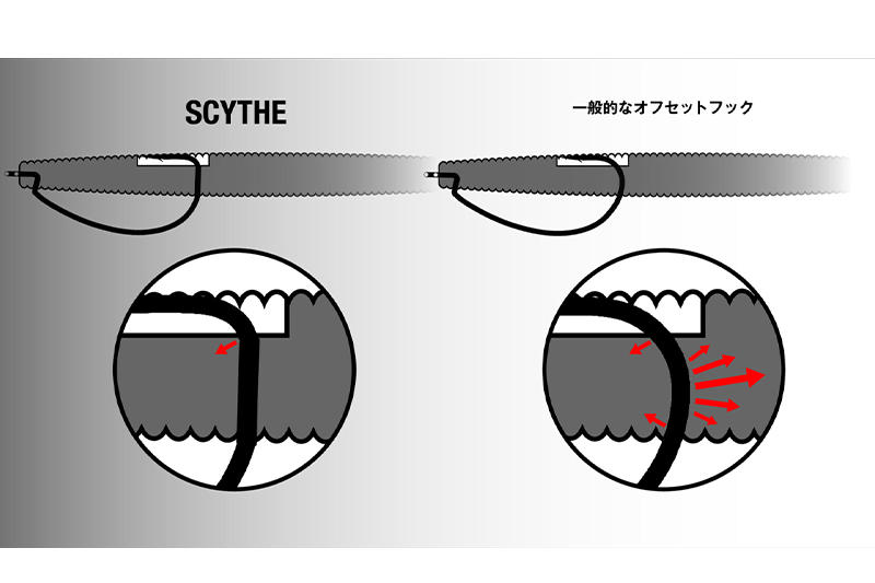 SCYTHE(サイス)は開発者のオフセットフックに対する「些細な不満点」から「セットしやすくズレにくい」を求め誕生したものです。