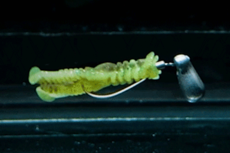 チヌ用クロー系ワームをフリーリグでセットし、水槽で泳がしていたときのことでした。
