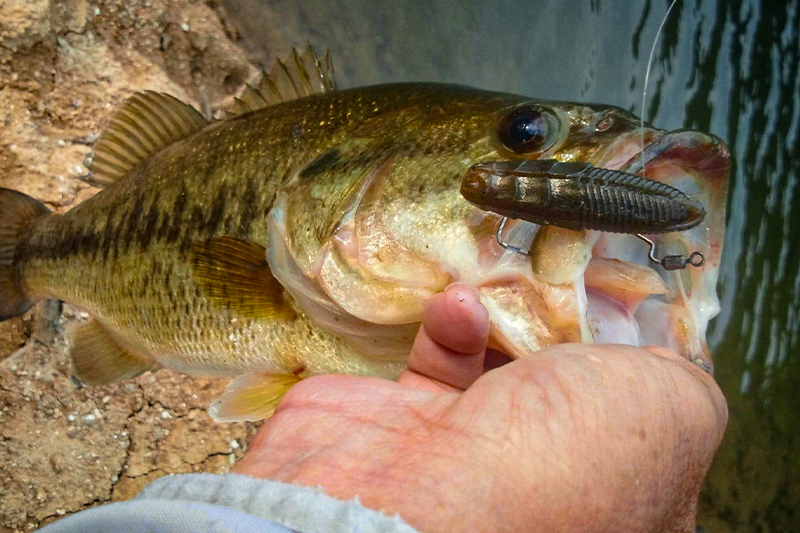 シンカー付きのリグで泳がすと、結構な確率で針先がボトムに向き、シェイクして向きを整えようとしてもなかなか戻らない。