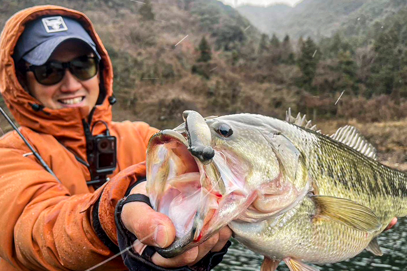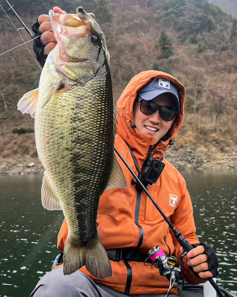 釣りを変えて、アウトサイドな場所+地形変化や立木、縦ストがあるような所を【BITAL MINNOW 5″】3.5gジグヘッドのデコ乗せセッティングミドストで探ると大当たり!