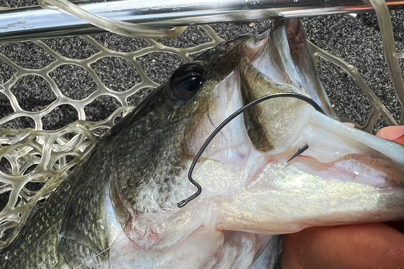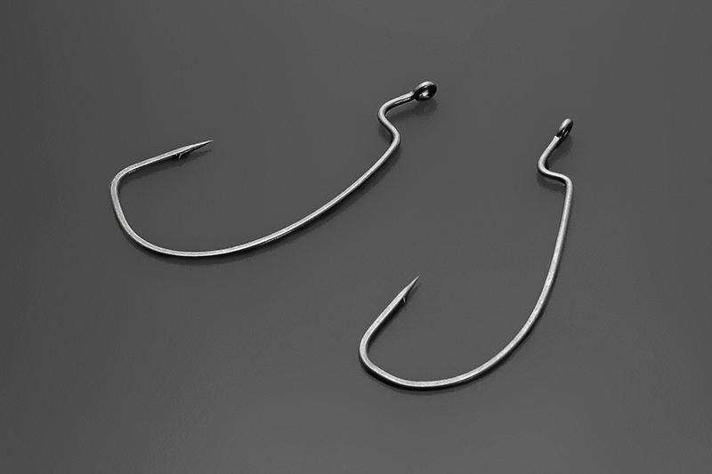 ワームに針先が刺さり込まない範囲でアプローチアングルを小さい角度で設計し、フッキングパワーのロスが少ない刺さり込みを実現します。