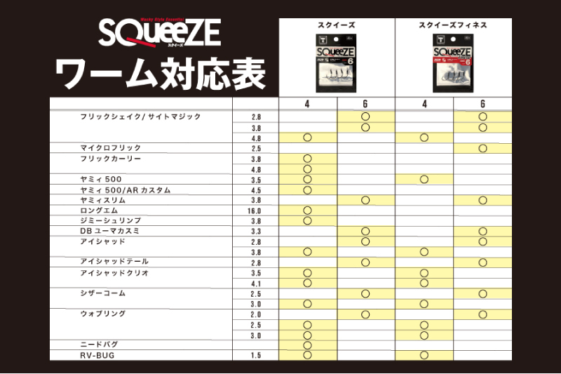 また、オリジナルのスクイーズに比べてガードが抵抗になりにくいため、水中でのワームの動きがクイックになります。