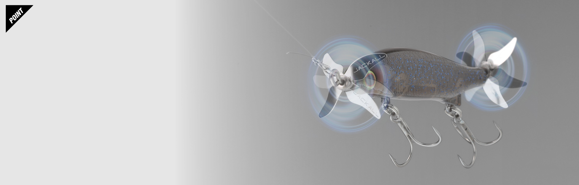 絶対的な水平姿勢を保ち崩さないプロペラセッティング。 回転良く水をかむブレードは適度な抵抗感をもたらすと同時に抜群の安定性を保ち、バスに見切られる原因となりうる、”不要なアクション”や”ブレ”は発生しません。
