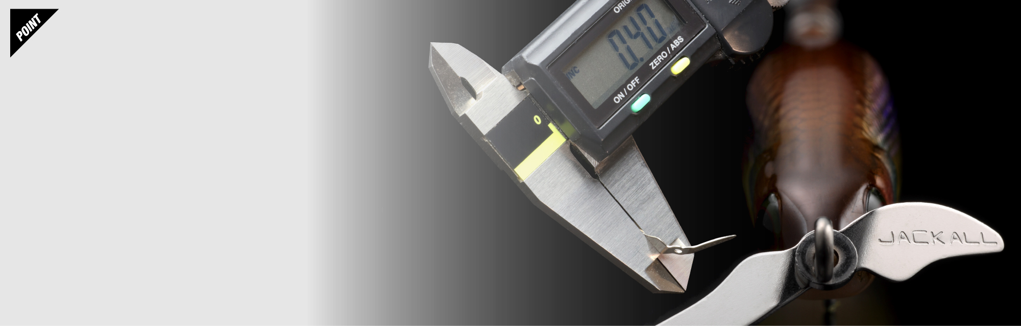 リアフックをフッキングの妨げとなり易いブレードから離れた位置に配置することで、より高確率なフッキングを実現。 またアイポジションをボディから離すことで1ランク大きなフックサイズの使用を可能とします。