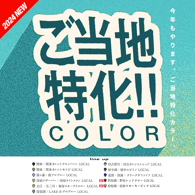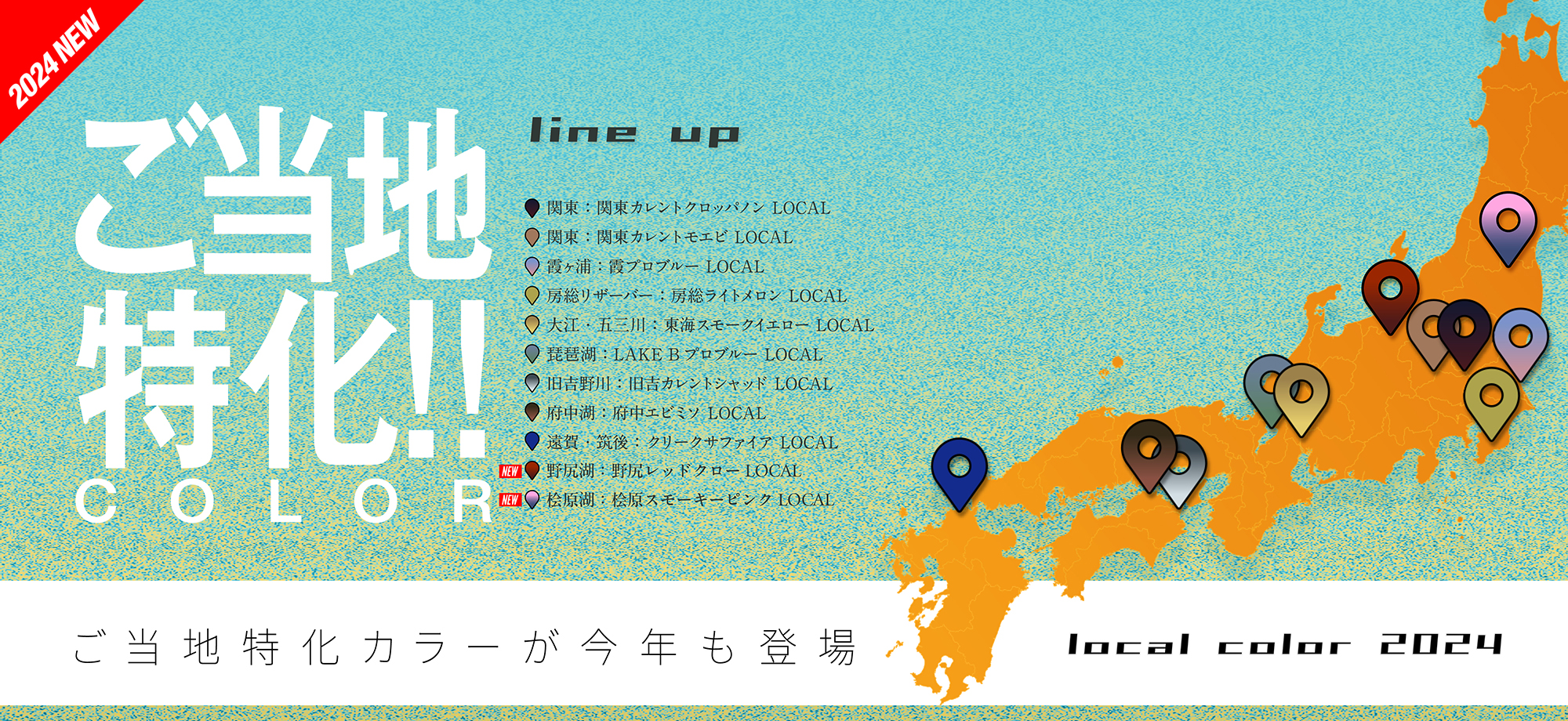 FRESH WATER > PRODUCTS > LURE > SOFT BAIT > LOCAL color series LOCAL color series ローカルカラーシリーズ CATEGORY:SOFT BAIT SERIES LOCAL color series YAMMY500ヤミィ500 FLICK SHAKE 500 / フリックシェイク500フリックシェイク500 WAMWAM FLARE / ワムワムフレアワムワムフレア PREV LIST NEXT RELATED CONTENTS COLUMN 2024-05-20新製品 YAMMY500とFlick Shake500に新色ご当地カラーが登場! 2023-08-02 マッチ・ザ・フィールド!! YAMMY500 4.5″にご当地カラーが登場!! 2024-07-09新製品 WAMWAM FLAREにご当地カラーが登場!