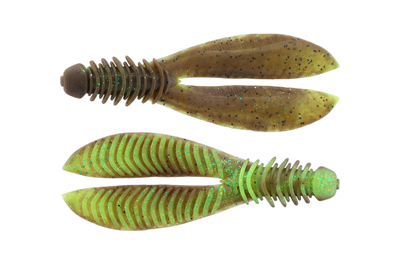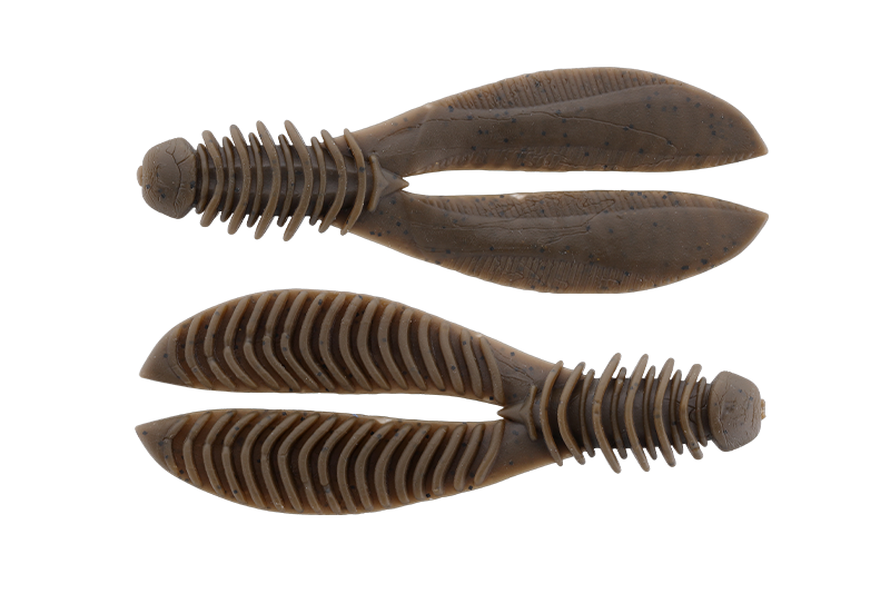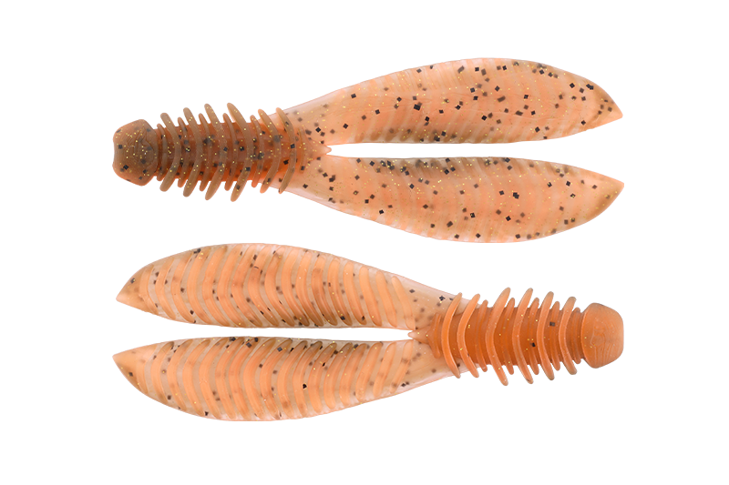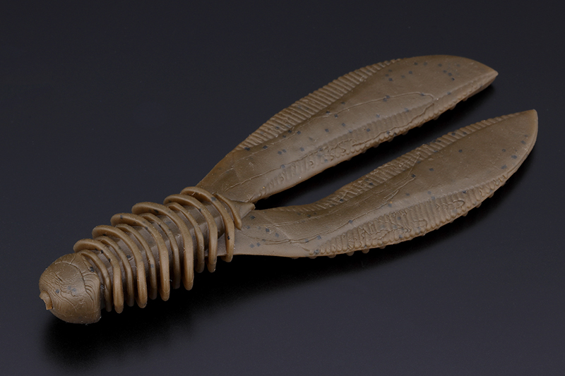 ボディ全体に掘られたリブが水を掴み、サイズ感以上に強く水を動かしアピールします。テール裏のリブは放置していても僅かな水流を捉え揺らめき、フィネスなアプローチを可能にします。