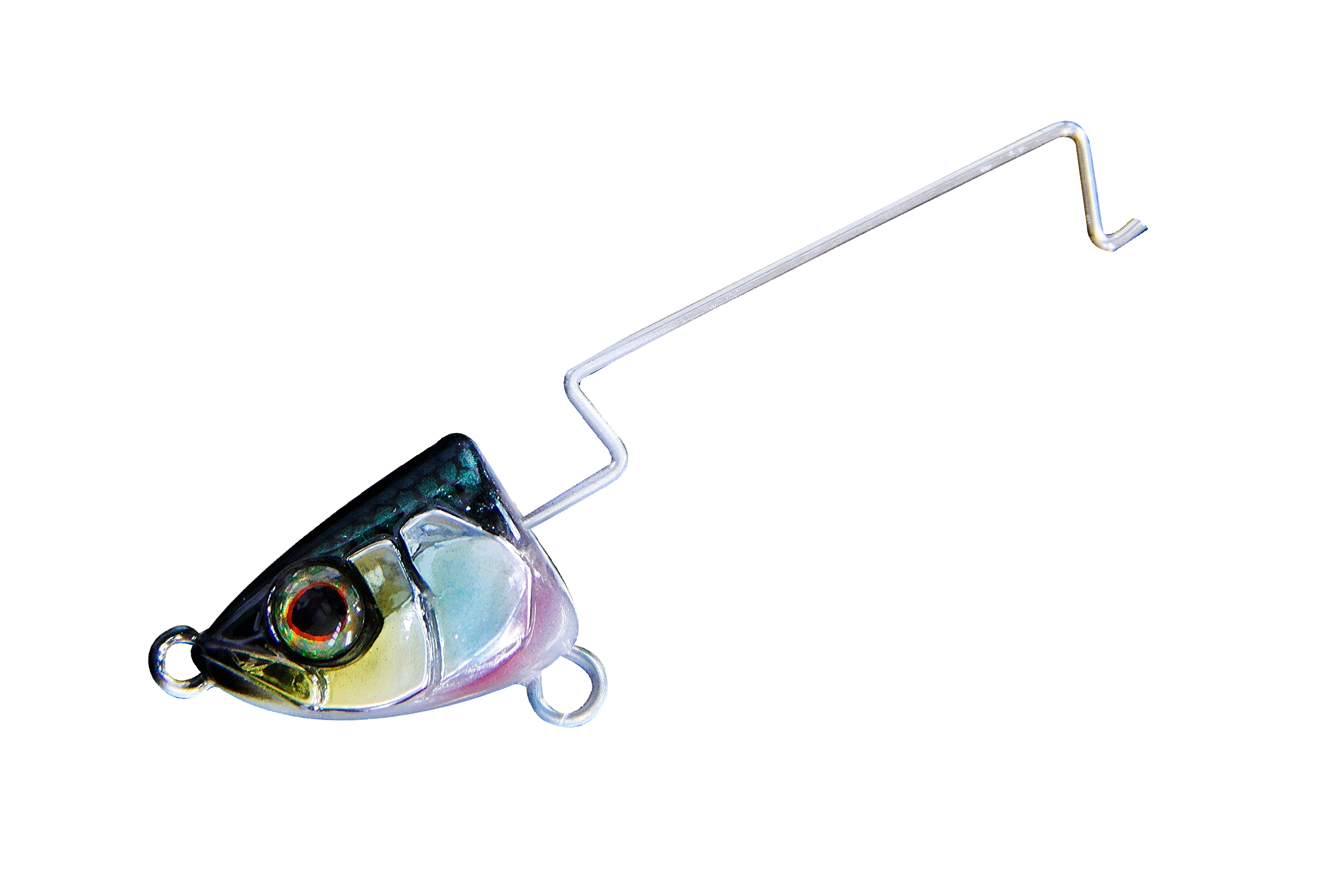 シャッドテールワームやカーリーテールワームなどのスイミング系ワームを装着するだけで、リアルなヘッドシルエットのスイムベイトに早変わりさせてしまうがリズムヘッドです。