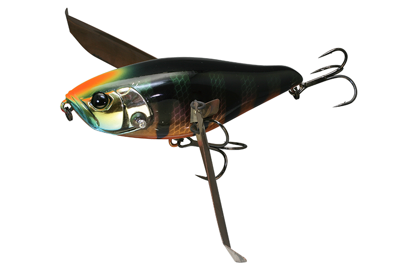 デッドスローリトリーブ対応をコンセプトに設計したオリジナルモデルで、ボディ内部の空気室の容積率を上げるために内部パーツや構造を見直し、ウイングも大型化と共に素材や形状さらに着水時の角度まで徹底検証。短い移動距離で細かなピッチのクロールアクションやピンポイントでの生命感溢れるピクピクアクションを演出し水面に誘い出します。