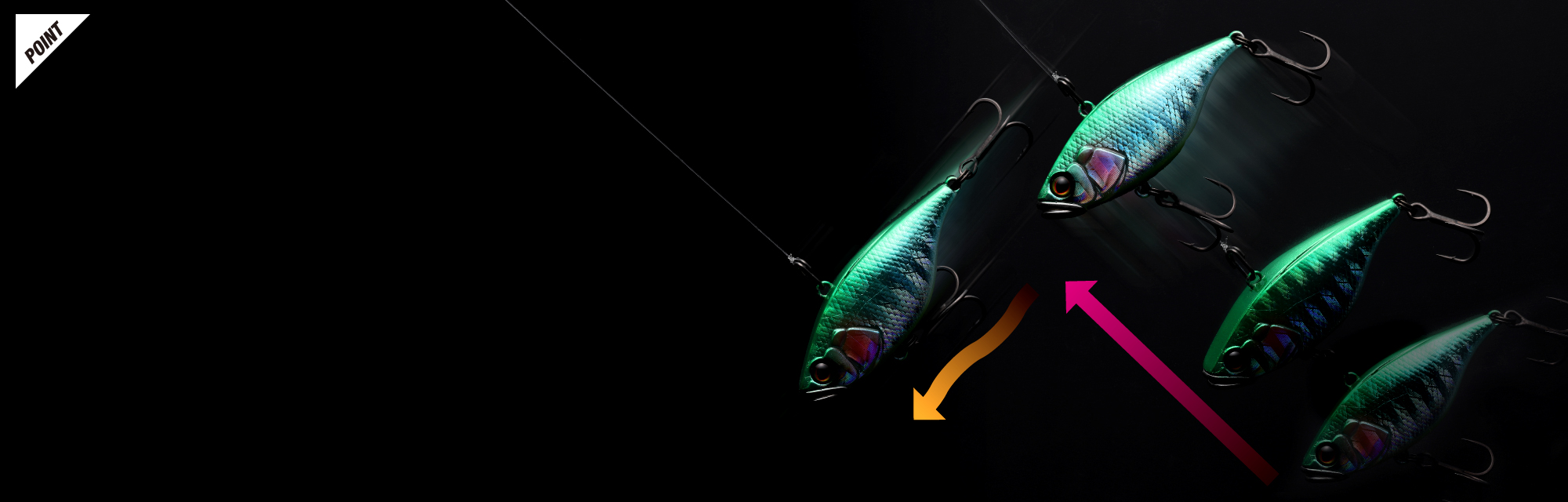 その場にいるバスに過度なプレッシャーを与えずにリアクションバイトを誘発させます。フィネスリアクションはバスが一ヶ所に集まるタイミングで、より多くのバスを釣り切る為のメソッドです。